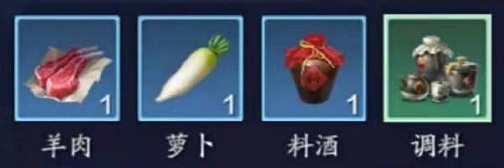 羊肉,萝卜,料酒,调料。(粗体字是必不可少的成分)