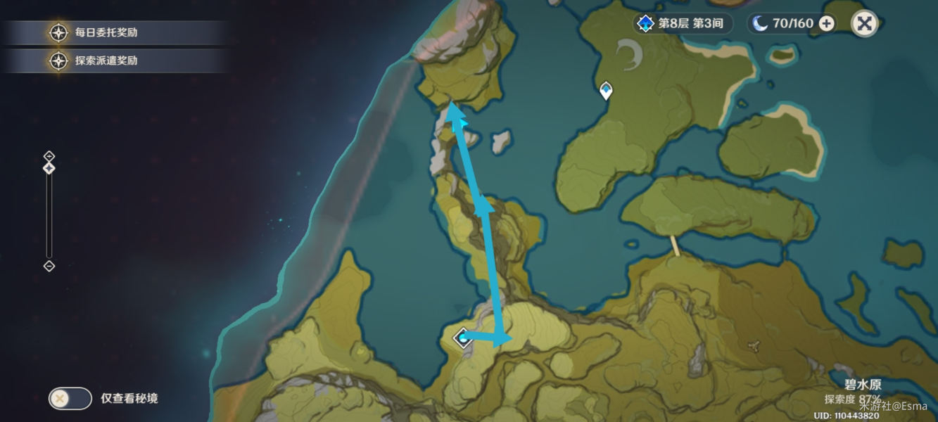 2。第二条路,第一步是爬山,第二步是飞到目的地再落到瀑布附近的山上,第三步是飞向目标。人在瀑布下的一大片空地还是很容易的。