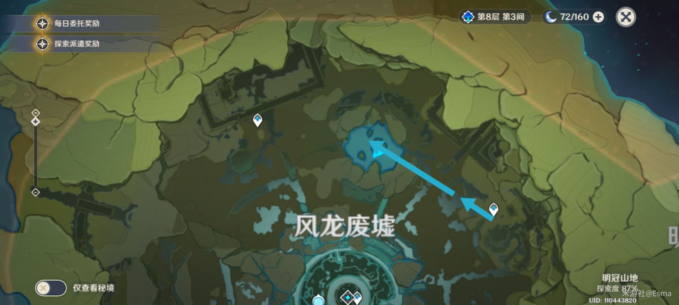 第一条路线,当你来到这个换乘点的时候,你会发现一个三重风场正对着目的地。可以利用风场爬升,最高点可以直线直接飞。一路上的怪物只是一堆装饰品,让你爬,飞得低也能跳。