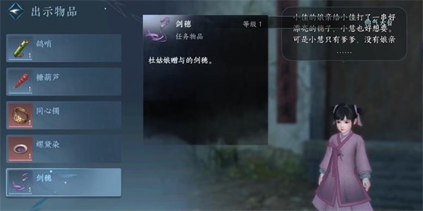 2.然后玩家需要找到度娘,与她对话并将瓷器交给她,然后获得剑穗;