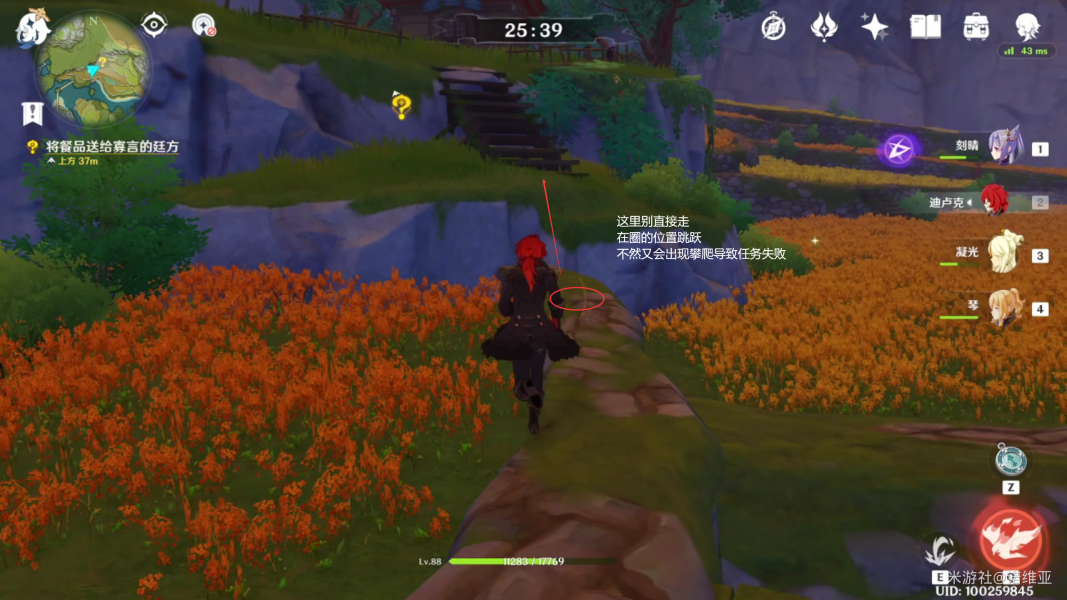 3。小心不要攀爬。从图中的桥上跳下这块斜坡石,直接上去。