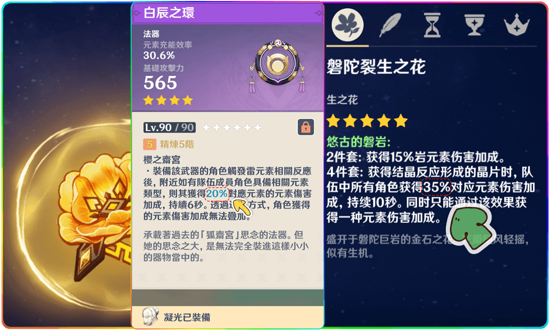 2、夭夭的圣物保证充能到200%以上,没有其他要求。