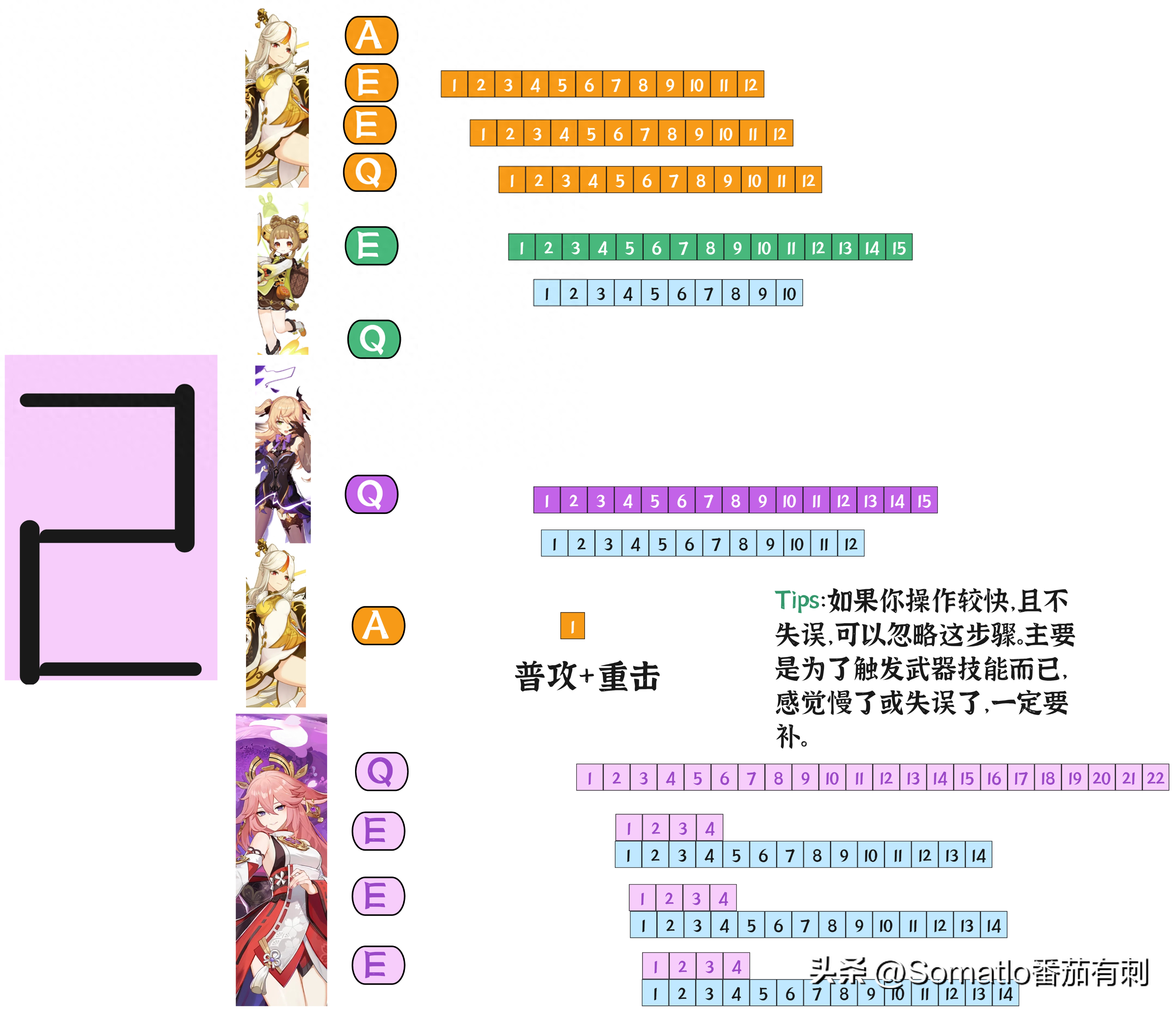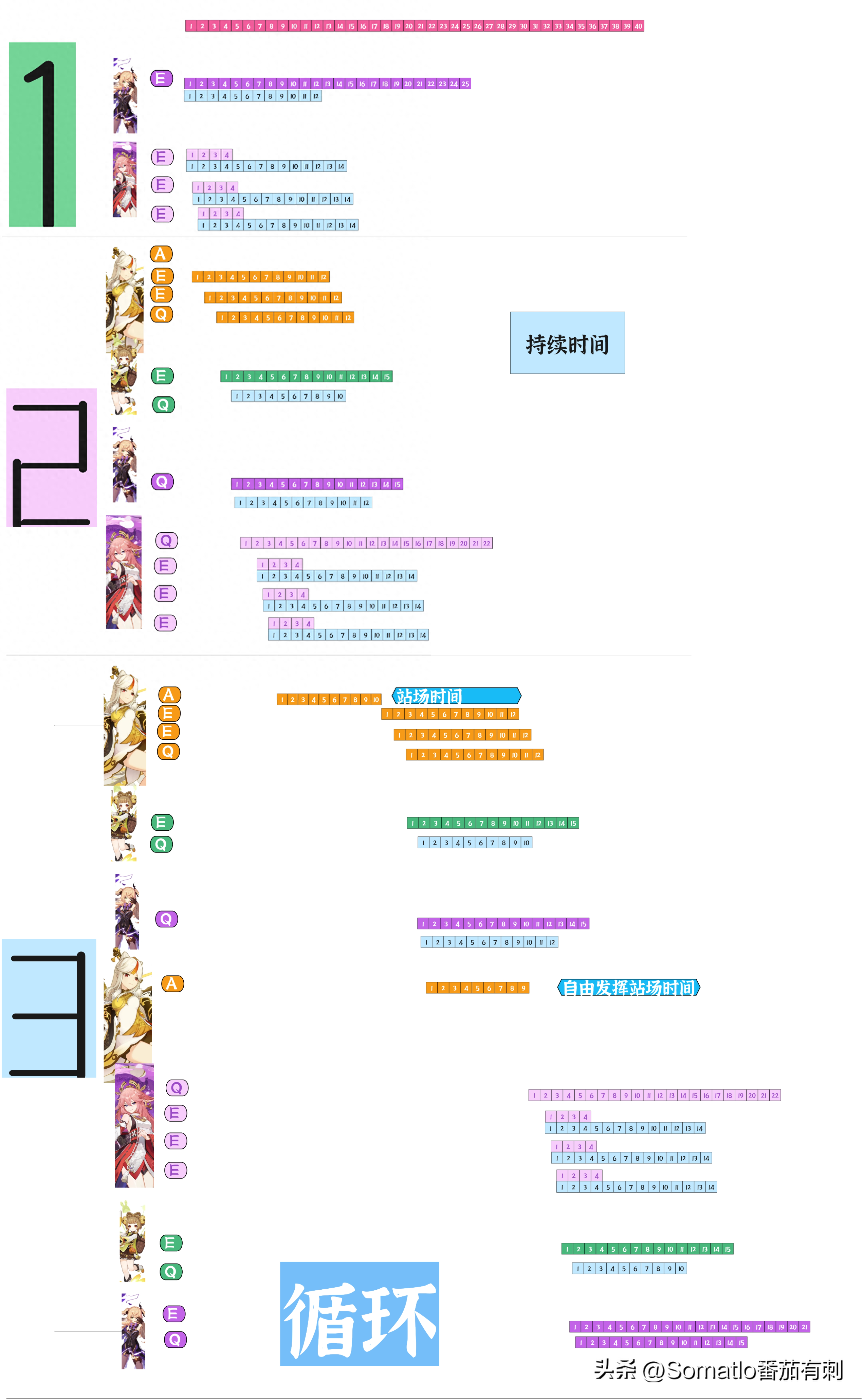 三、操作流程1、时间表第一阶段:起始阶段,先是女王的e斗技(千言的附加攻击),然后是神子的三重e。