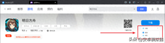 3、部分渠道无法直接从官网下载APK安装包。模拟器中只能安装渠道应用市场或游戏中心,在应用市场中完成下载安装: