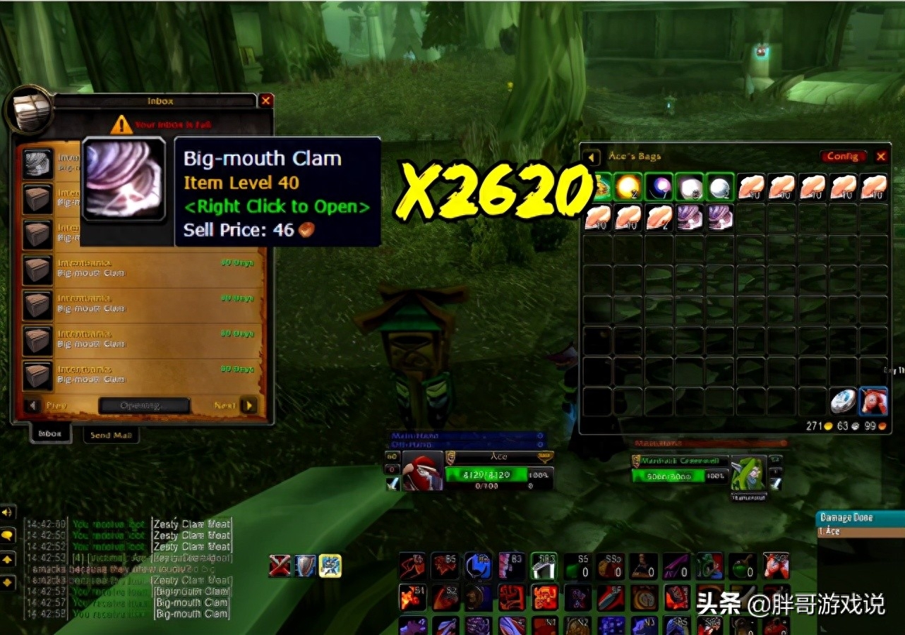 由于背包放不下,玩家只能邮寄到其他账号。虽然回城的路上花了一些时间,但实际上我花了24小时来画画。在这个过程中,玩家总共获得了2620只巨型贻贝。
