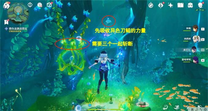 3。然后来到水中寻找异色刀雷的吸收能力来切断水草。
