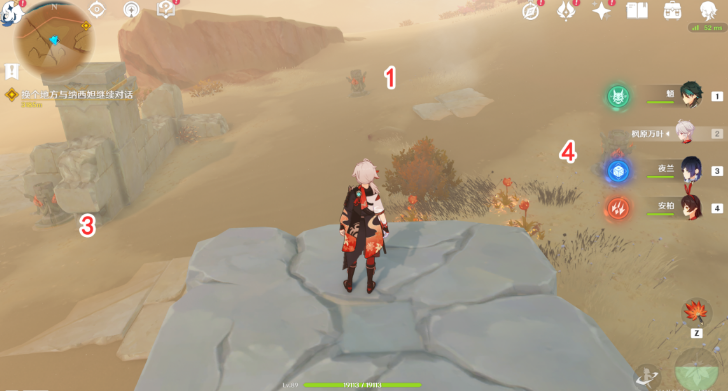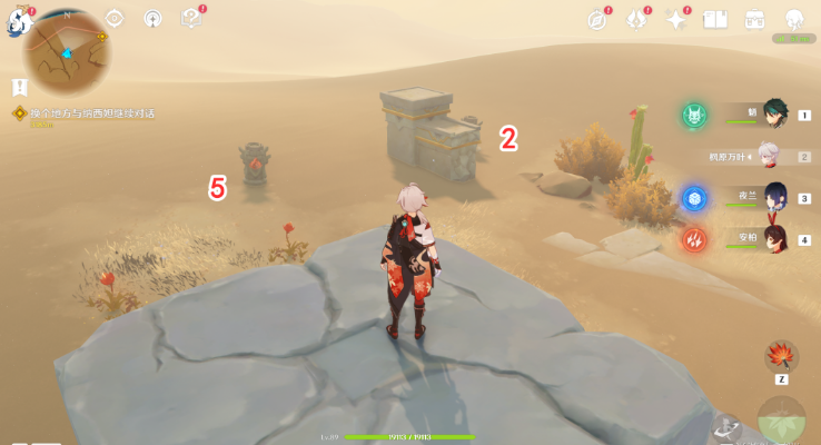 2. 站在秘境上,看向小地图右下角。你可以看到三个火元素方尖碑。可以按顺序点亮。 (点亮顺序为旁边火焰花的数量,没有火焰花的为第一个)