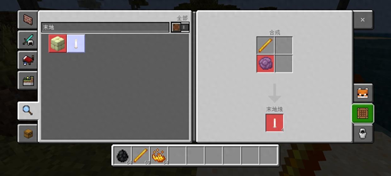炼药必不可少的火杖。酿造台的合成需要一根火棒(这个也可以从村里的石塔中获得),将火棒变成火粉,可以作为酿造台的燃料,也可以作为制作的药材力量药水。火焰棒和末影珠可以制作末影之眼,是寻找和打开世界末日的重要材料。燃烧的木棍和地面爆炸的紫色水果可以组合成地面蜡烛进行装饰。