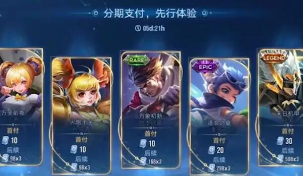 1、首先玩家在分期皮肤列表中选择自己想要购买的皮肤,只需支付首付即可获得皮肤。