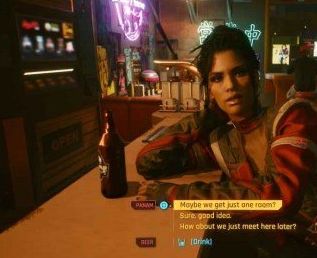 2、和帕南在酒吧喝酒时,选择【【喝】到你的车上!】【开个房间?】【两张单人床,可以。 】她会同意和你住一个房间,不过不用担心。她只是想省钱,睡在她旁边的床上。