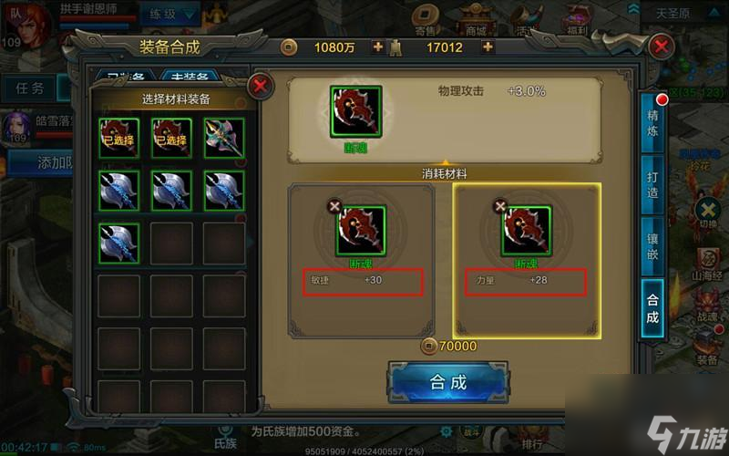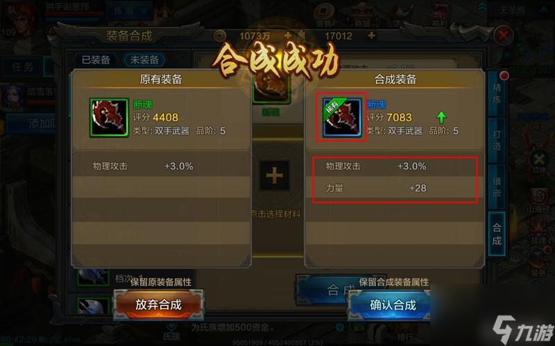 如果你的主装备有百分比属性,辅助装备1和2都有力量属性,而且主装备属性单一且并不稀有,那么如果你把两件属性相同的装备放在辅助的位置装备1和装备2,会有很大的区别,有两种属性的稀有装备可以概率合成。