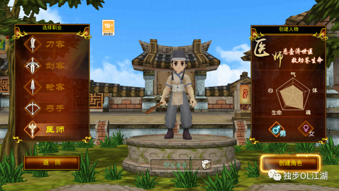 医生这个职业来源于漫画中的田这个角色。作为碧峰派正直的少主,他武功高超,继承了高超的医术。他是世界上罕见的青年才俊。医生担负着治病救人的职责,在世界上享有很高的声誉。作为《热血江湖》手游中唯一的辅助职业,医生不仅可以给队友提供治疗和各种buff,还可以拥有buff。他的攻击能力不容小觑,PVP也非常强大。