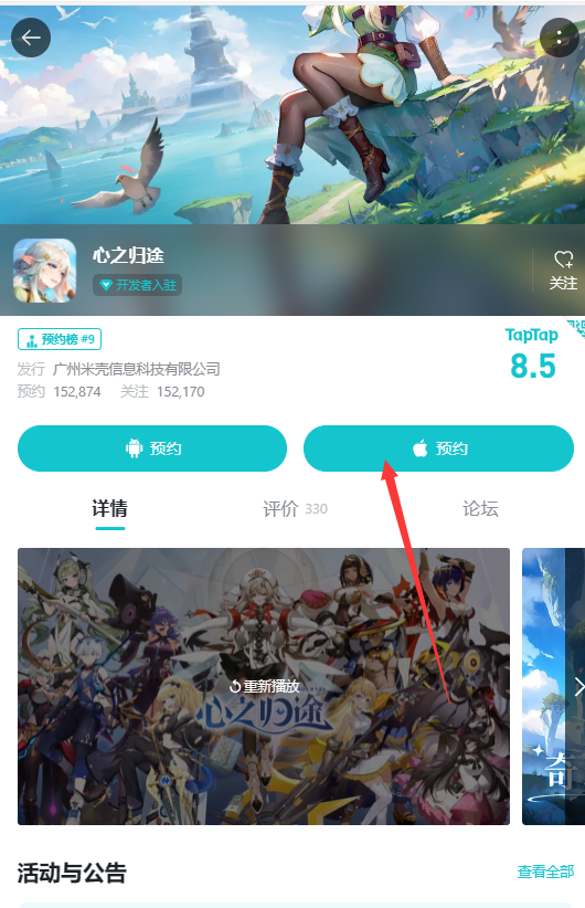 预约步骤:打开taptap,在搜索框中输入心的回归挑战页面,点击【预约】。