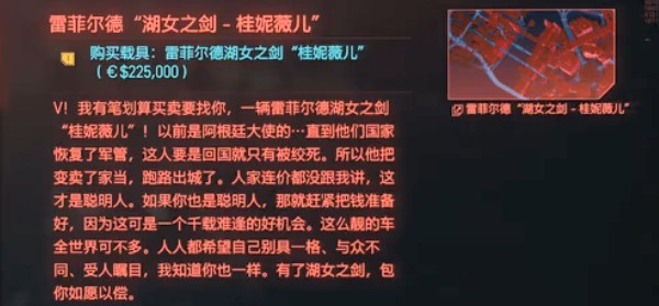 赛博朋克2077中的湖之剑少女是一辆非常帅气的超级跑车,价格也非常昂贵,但是为了征服巴拿马还是要买的。那么让我告诉你赛博朋克2077湖女之剑位置介绍。