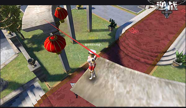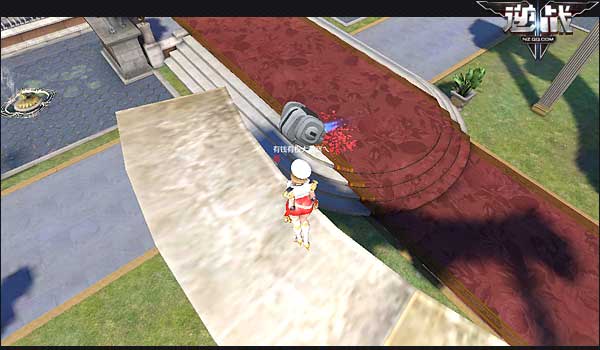 如图所示,先跳到雕像处,按照箭头标记的路线,然后从路灯一步步跳到花堆上。稳定后,跳上飞机,到达花堆前。然后,当飞机起飞并开始上升时,它跳上了前方的高桥。