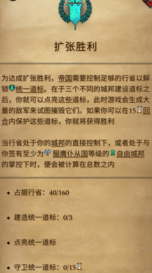 扩张和获胜更加困难。它需要你占领多个省份,点亮统一路标,击败强大的敌人才能获胜。