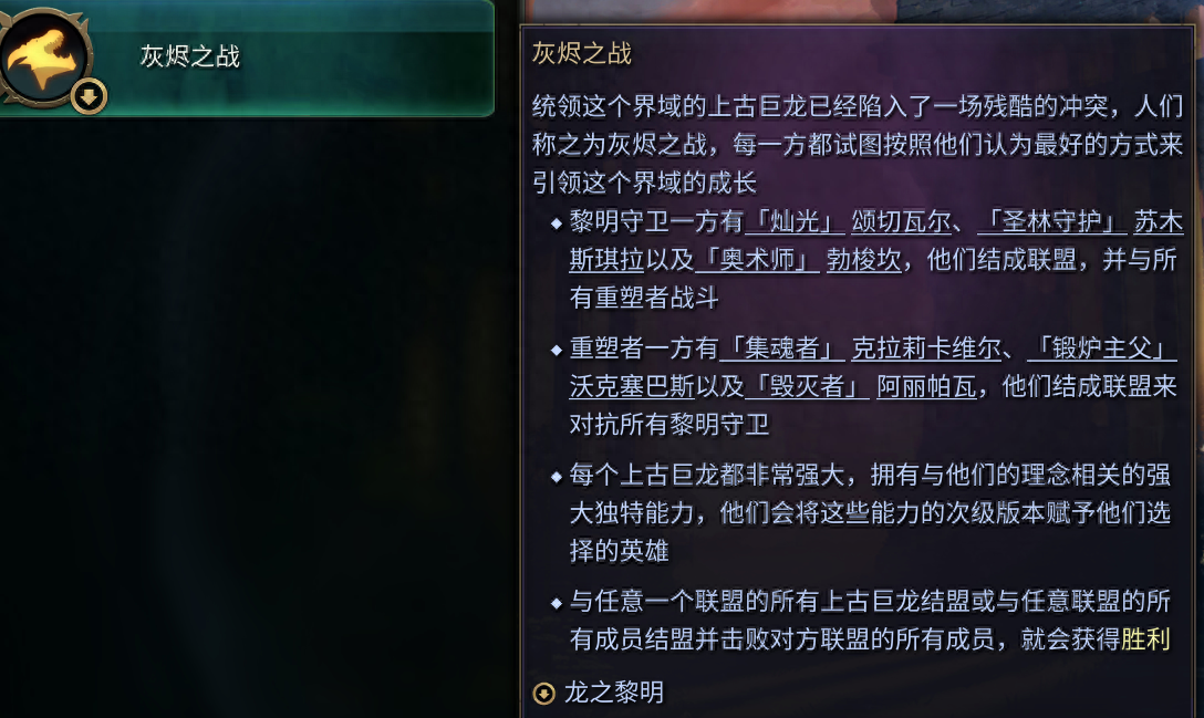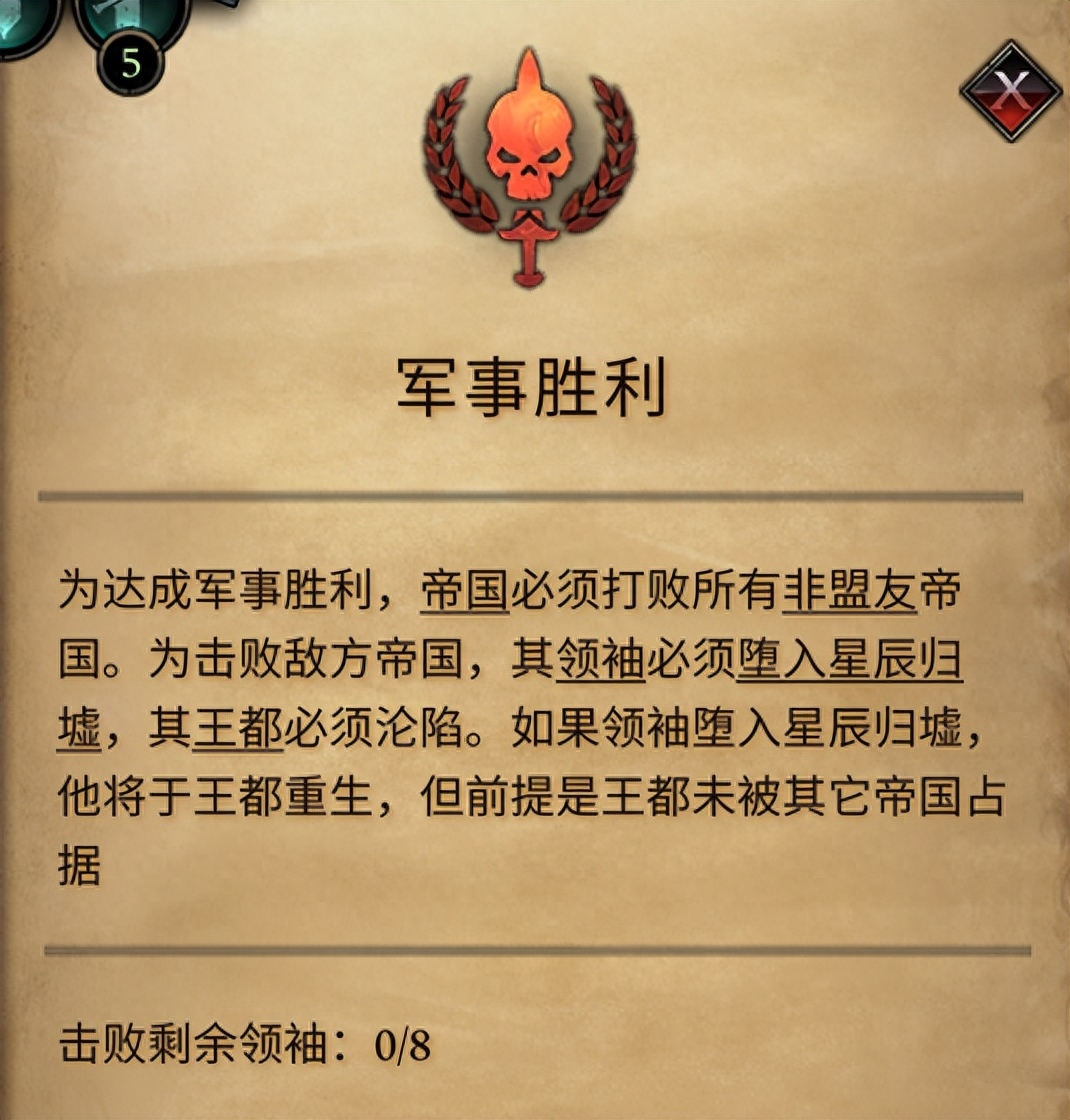 简单来说,如果你把所有派系都变成你的盟友,或者让所有派系都只变成你的盟友,这也是军事上的胜利,也是最简单的获胜方式。