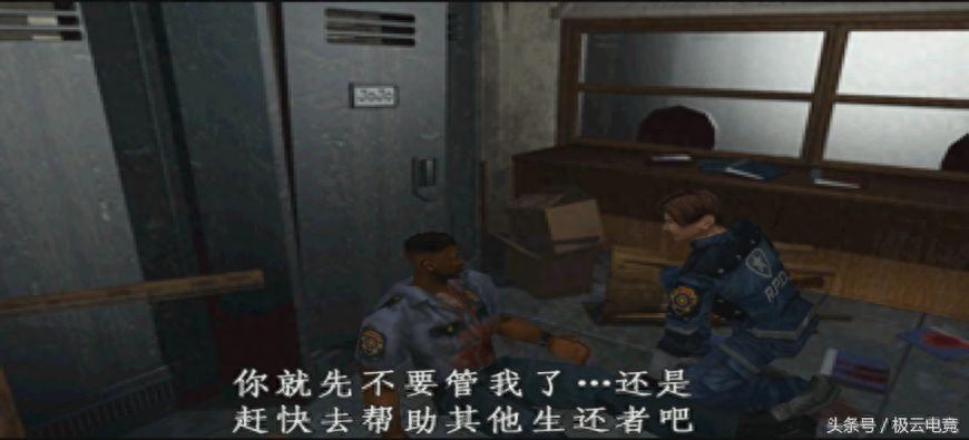 推开门,莱昂来到了警察局的大厅。看到破碎的窗户和地板上的血迹,他知道它没有逃脱丧尸的攻击。经过一番搜寻,他在一间办公室里发现了一名受重伤的黑人警察。提利昂赶紧询问浣熊市发生了什么事,马文告诉了他事情的来龙去脉。