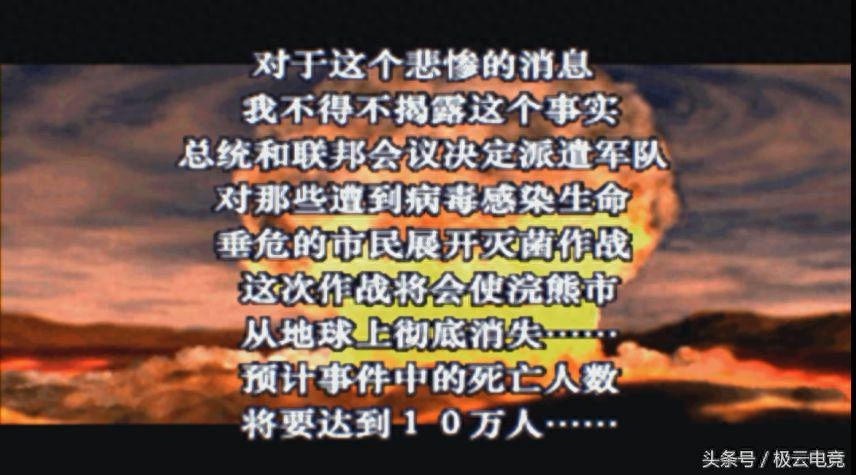 1998年10月1日凌晨,美国政府对浣熊市实施“绝育计划”。一枚携带核弹头的导弹划过天空。随着巨大的蘑菇云缓缓升起,浣熊市终于得到了净化。美国政府将这起造成10万人死亡的事件命名为“浣熊市事件”,但事件中只有少数幸存者幸存。 Benedict S. Lyon,Claire Redfield,雪莉伯金、Ada Wong,吉尔瓦伦汀S.T.A.R.S 团队成员Barry,Hank “The Reaper”,Ann Brela 高级谢二盖。