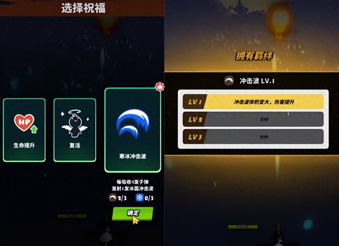 学习同类型的不同技能也可以解锁羁绊。比如解锁冲击波的羁绊后,冲击波的尺寸会变大,伤害会进一步增强,清屏能力也会再次加强。