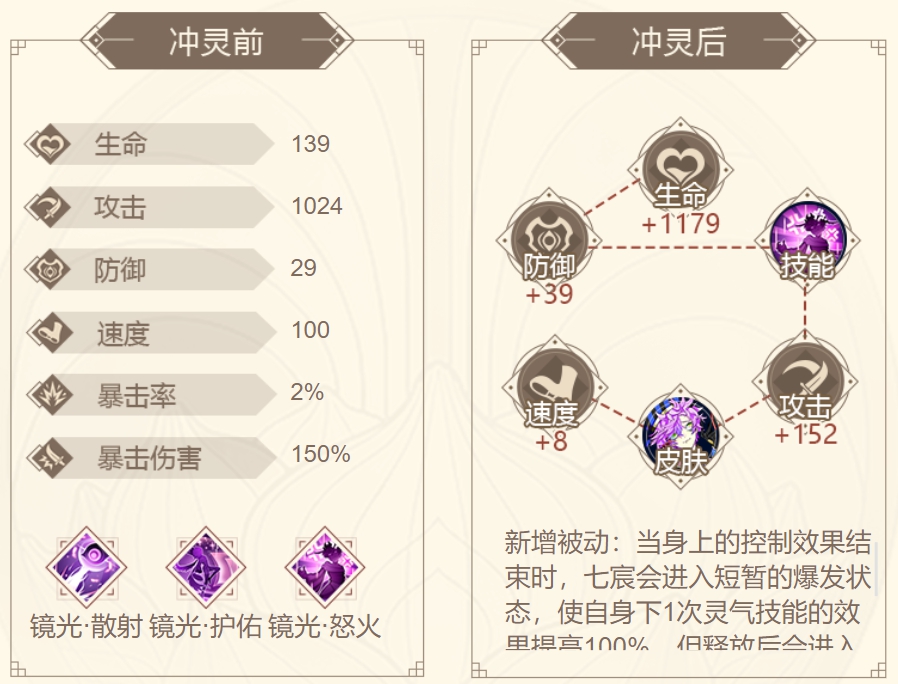 启辰释放技能,让我们所有人在一轮内获得10%的伤害反弹和效果抗性。升级到5级,技能效果增加20%。