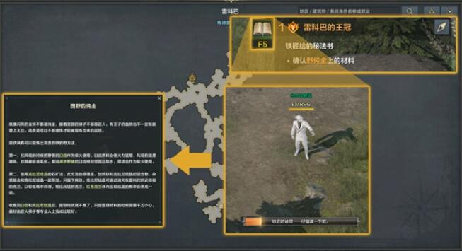 2、然后用铁匠给的秘法确认野生纯金的材质;