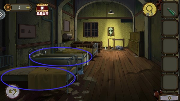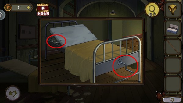 密室逃脱绝境系列10寻梦大作战15关攻略1。首先将摇杆安装在病床上,并将铁钩拿到床下。