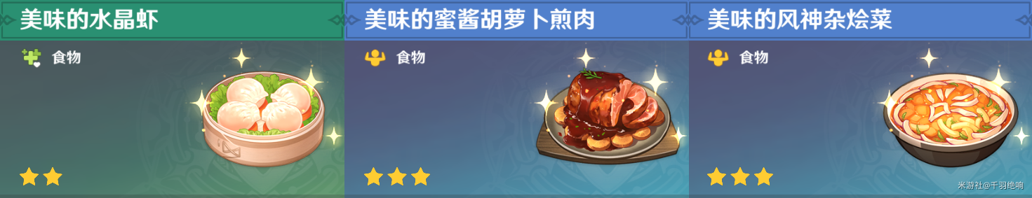 烹饪:水晶虾,风神杂烩,蜜汁胡萝卜炒肉。