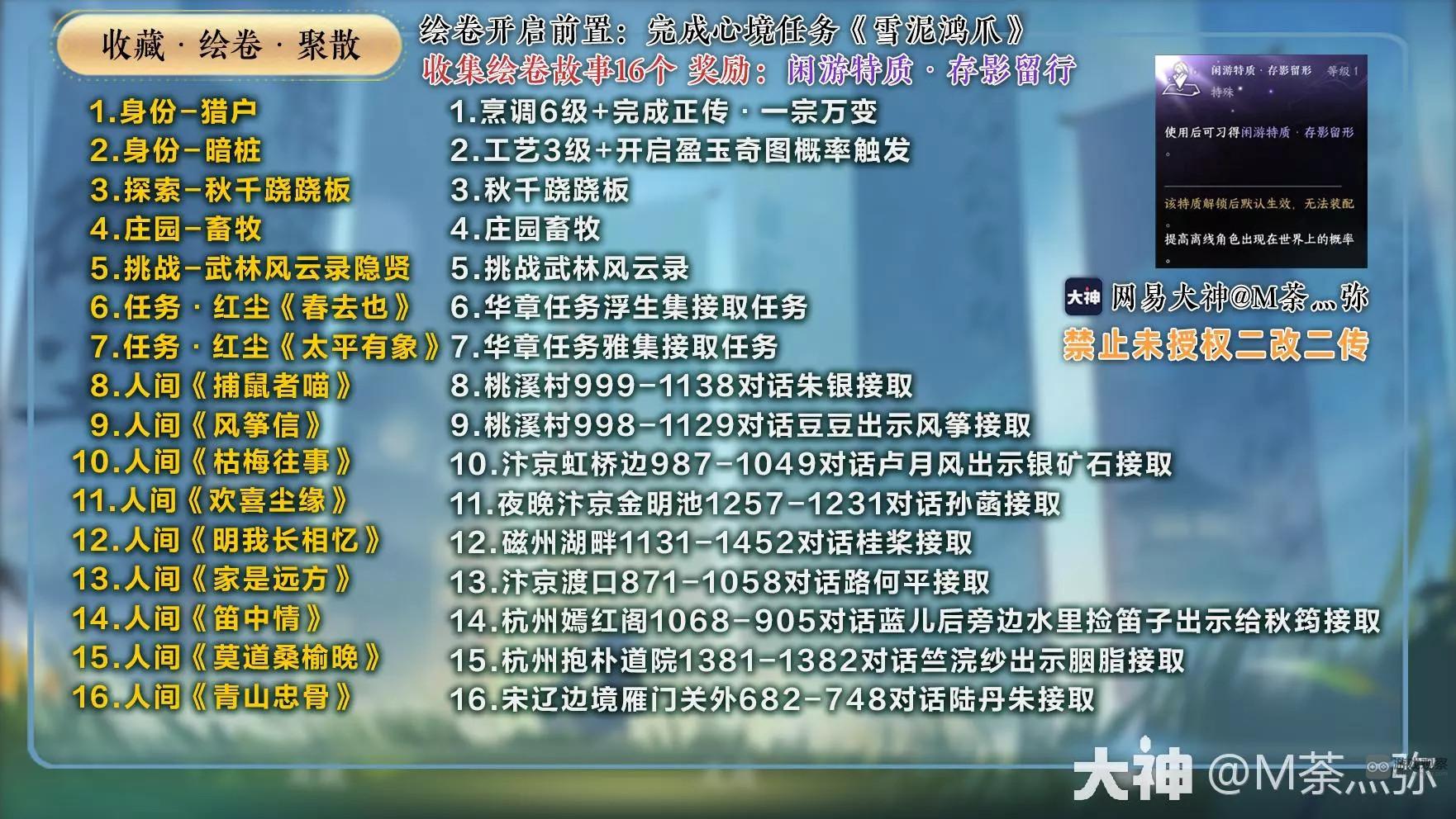 1.收藏画卷聚散—— 收集16个画卷故事解锁休闲旅游特色留影留记