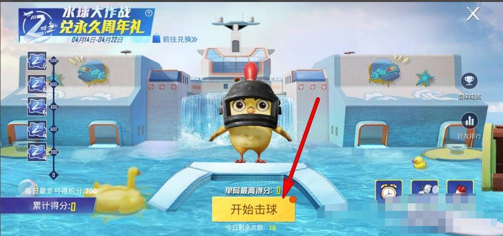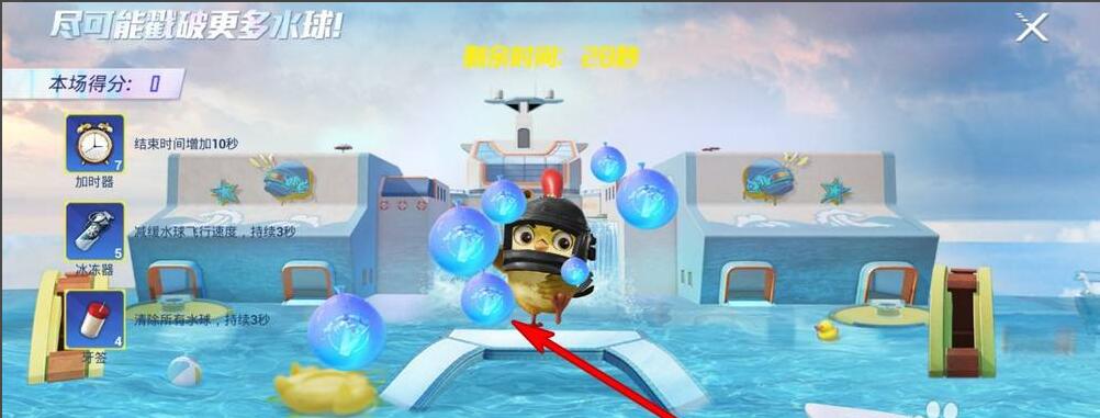 4。点击开始击球。扔出的水球可以戳破。每破一个就加一分。如果被水球击中,会减少一秒。