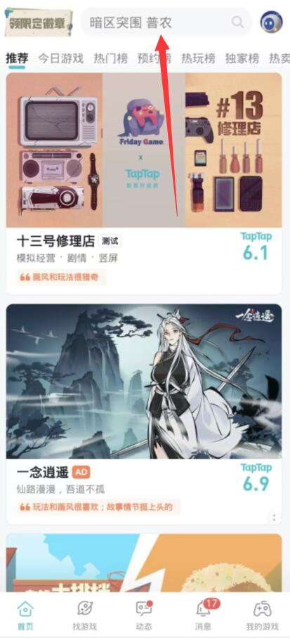 打开taptapAPP,进入首页,进入【神奇宝贝聚会】;