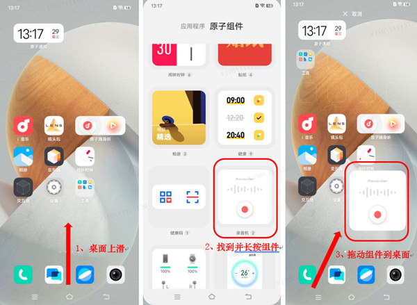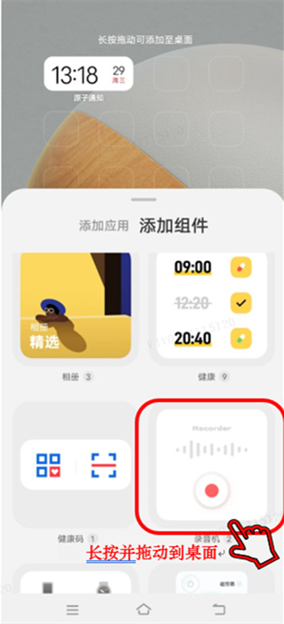 也可以从桌面滑动,点击原子组件,将相关组件拖到桌面上。