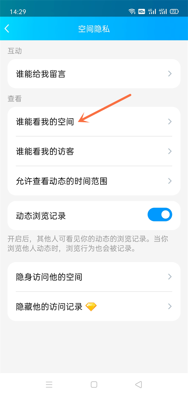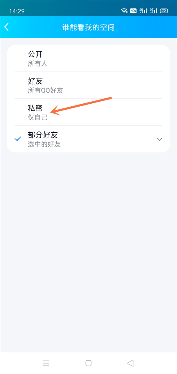 5. 单击“谁可以看到我的空间”后,单击“私人”。