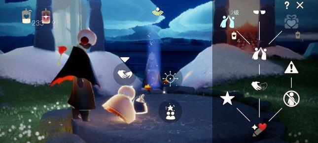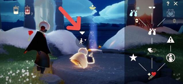 1、首先,我们需要点燃蜡烛,才能看到对方的样子。交换1根蜡烛并与其成为朋友以解锁牵手动作。单击头部上方的三角形。