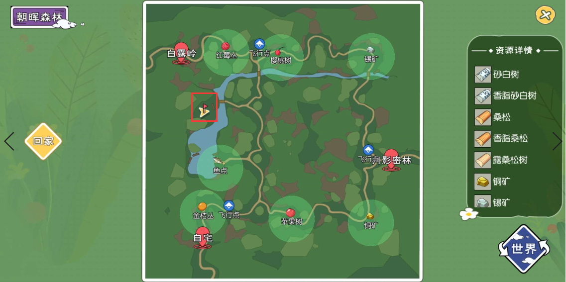 3。下面的红框里只有两棵露松树,可以垂钓,等待提神。