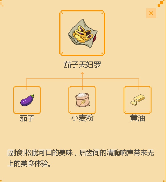 茄子天妇罗:两级解锁,茄子*3+小麦粉*1+黄油*1