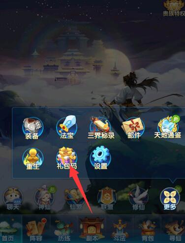 2. 会弹出一个小窗口,点击【礼品码】并在上面输入即可获得福利。
