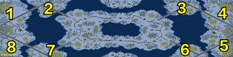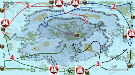 所以北极圈和长征地图不能成为PVP的首选。主要原因是那些地图要么地形过于坚固,易守难攻,大大拖慢了游戏节奏;或者分布不均、不平衡。以北极圈地图为例: