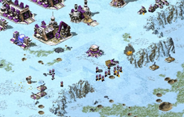 其实这和第二点地图的特点有很大关系,但是我单独拿出来是因为我发现在冰雪地图下,无论起始位置在什么位置都可以做到。这种共性成为冰雪的一大特征。从某种意义上来说,你对这张图越熟悉,你的优势就越大。因为他能记住建筑物的绝佳位置以及不同地理位置的有利地形。细节很重要。一个掩体,一门巨炮,不同的位置都会影响比赛的结果。这也是红警游戏最大的魅力。