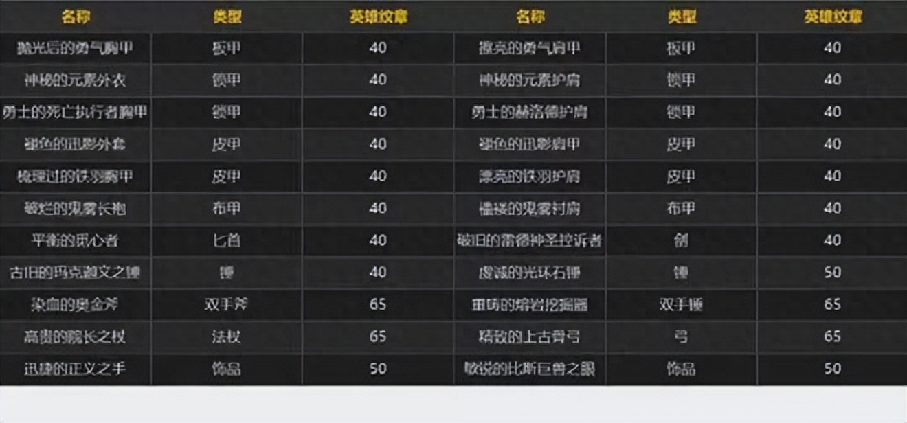 我们整理了可以兑换英雄徽记的传家宝装备,如下表。