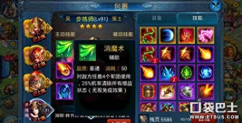 主动技能:四体除妖、陨石、异变、解封、八门、定身、治疗。