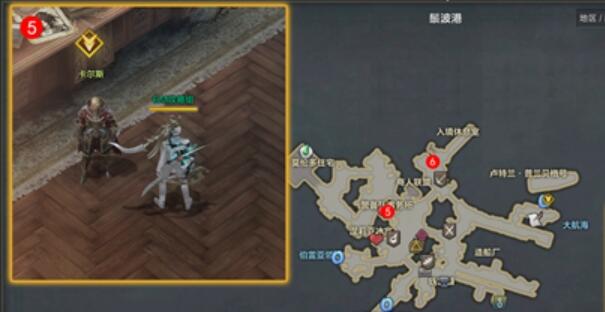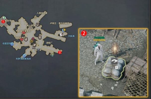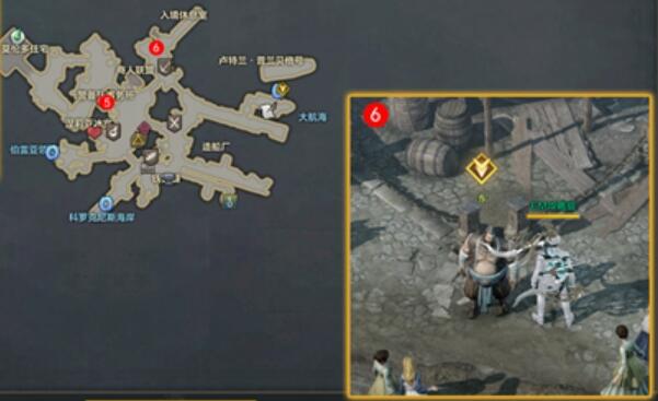2.之后玩家需要前往造船厂附近,到达后需要将库存物品带到商人联盟;