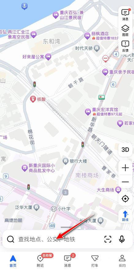 第一步:打开高德地图APP,点击搜索栏。