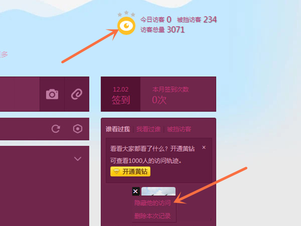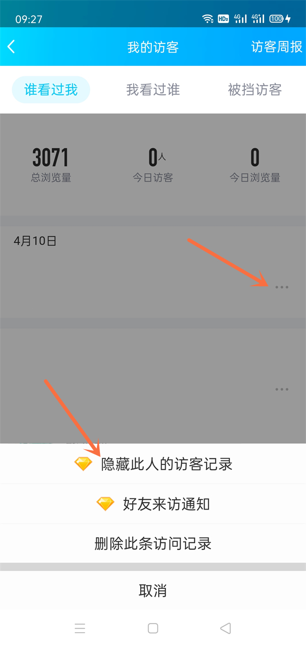3. 单击访客右侧的三点图标,然后单击隐藏此人的访客记录(需要黄色菱形)。
