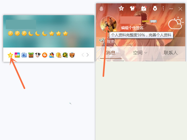 1、将鼠标放在QQ头像上,点击QQ空间图标。