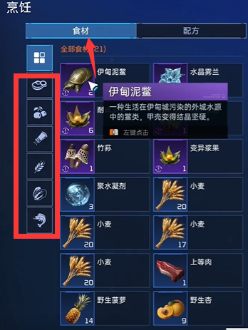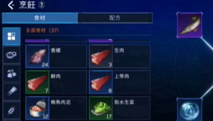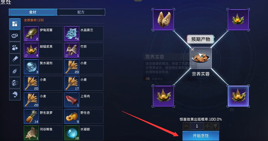 2、采集完成后,会直接显示在烹饪界面中。配料中选择露水和金枪鱼肉末;