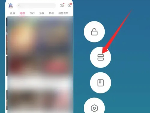 2、在后台应用中找到并长按B站图标,点击B站应用右侧菜单中的分屏标志。