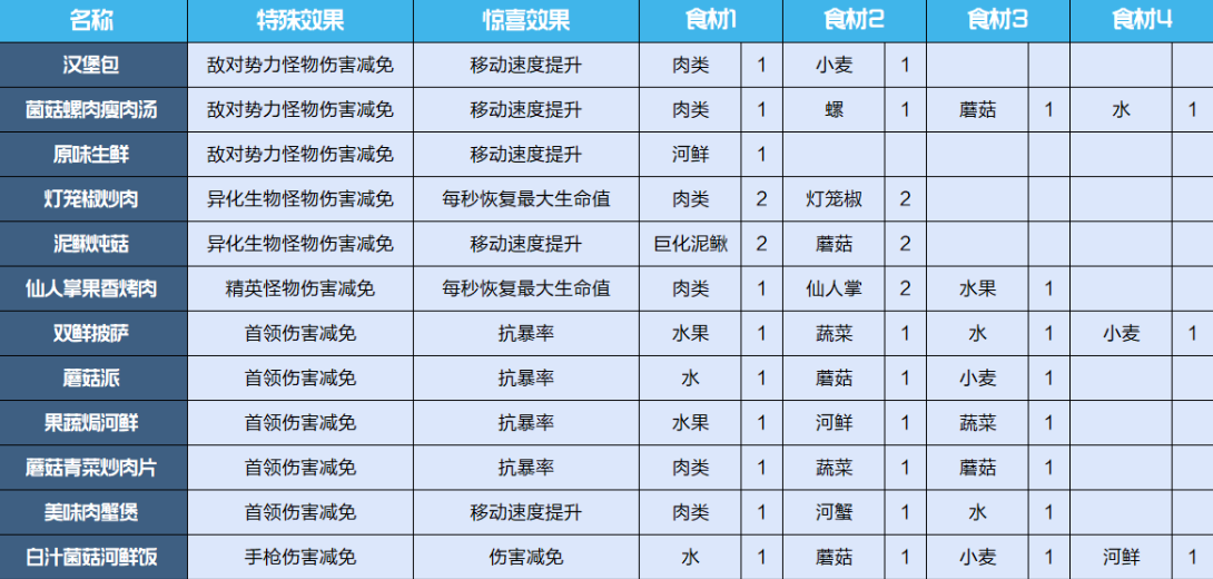 星球重启食谱配方攻略大全