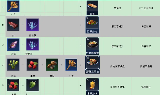 糖霜汤:肉x1、河鲜x1、蘑菇x1、水x1
