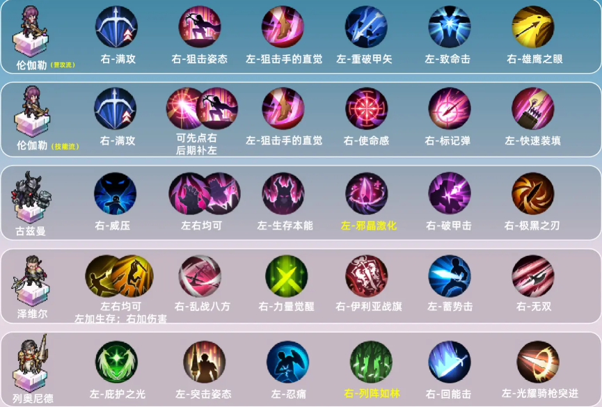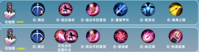 普攻加分:右-全力攻击、右-狙击姿势、左-狙击直觉、左重穿甲箭、左-暴击、右-鹰眼